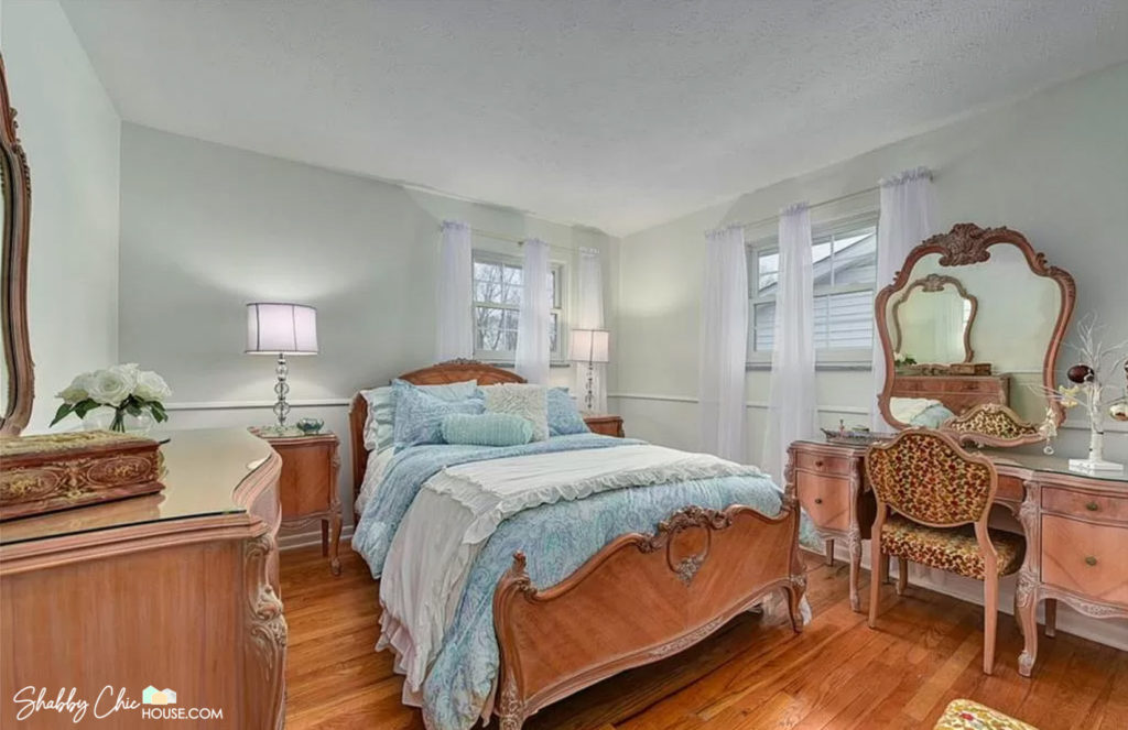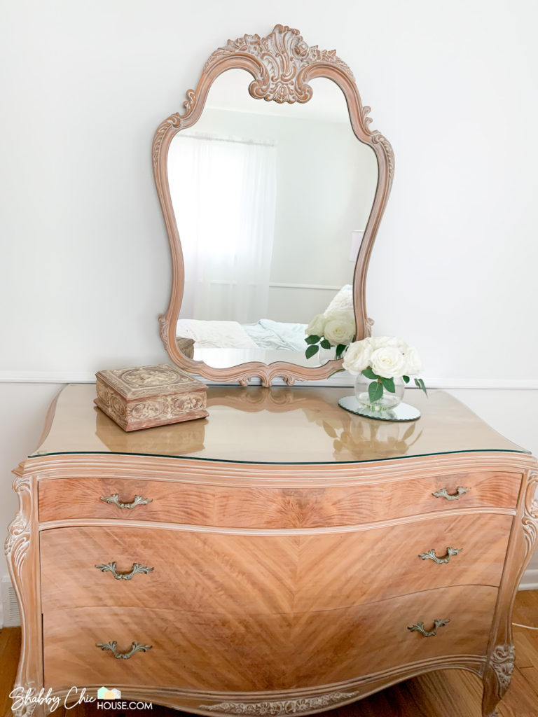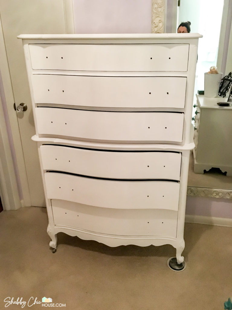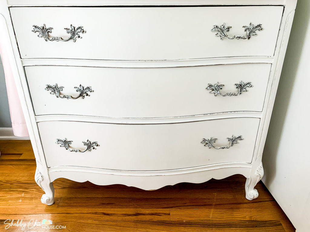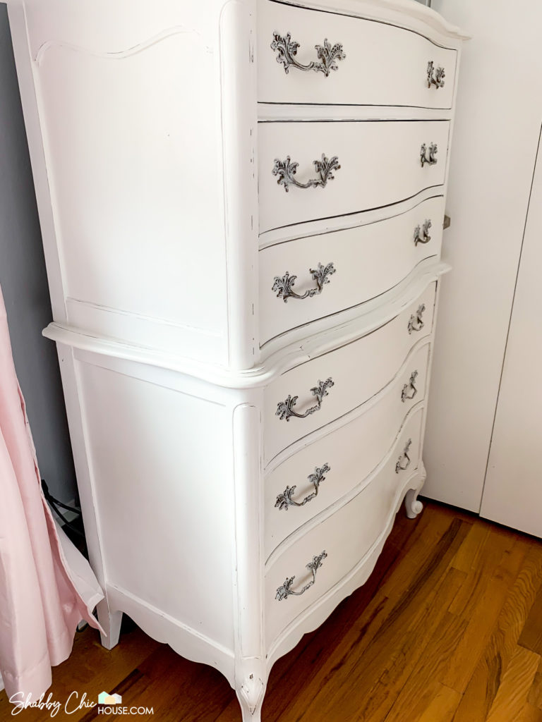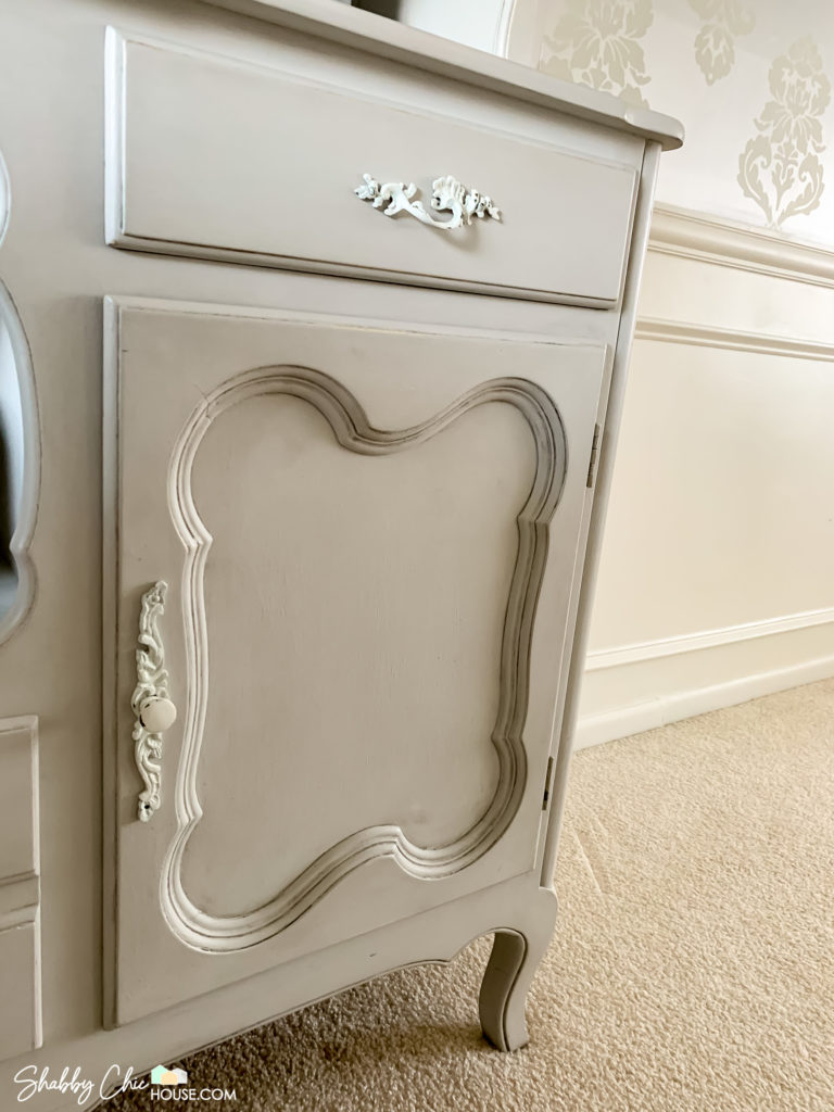 This three-piece French Provincial bedroom set is one all-time favorite chalk paint projects. I just love the wavy drawers and unique handles.