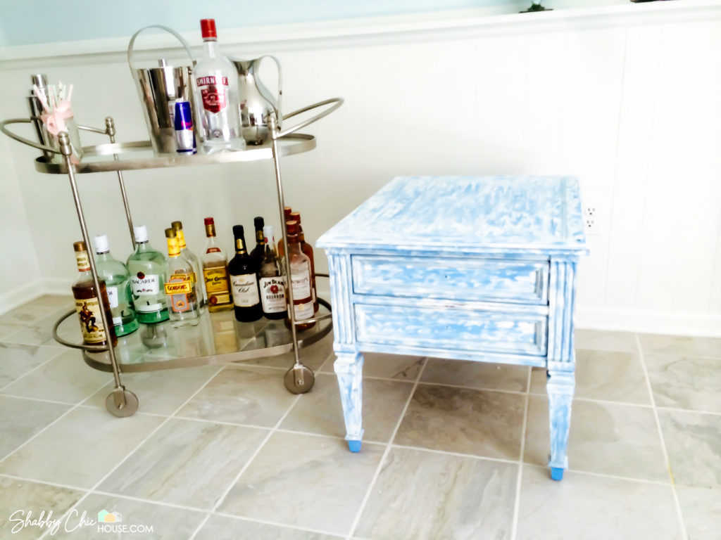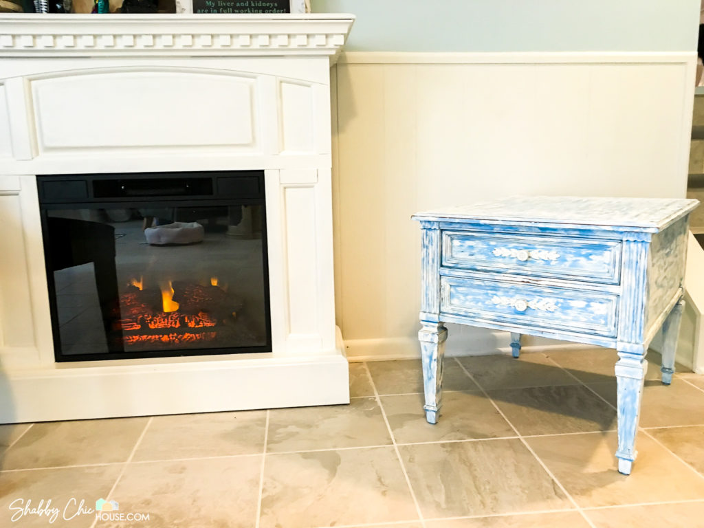 Homemade Chalk Paint – White & Electric Blue End Table