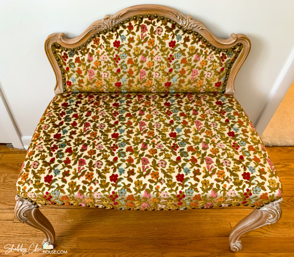The main reason we got such an amazing deal on this dining room set was due to its super old-school yellow color and red floral upholstery. However, this piece had some great bones and that French Provincial look we love. With a little bit of love, chalk paint and new upholstery we could transform this set without having to spend thousands of dollars.